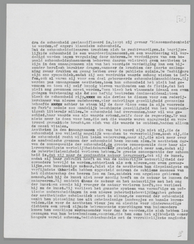 Noch de aestheet als kunstenaar, noch de aestheet als kunstkenner is het, die de aesthetica tot iets dubbelzinnigs en misleidends maakt. De eerste is er te actief of te inconsequent, de tweede is er te naïef of te wetenschappelijk voor. De eerste weerlegt in zijn werk zijn eigen theorie, als hij iets te zeggen heeft, en bevestigt in zijn werk zijn eigen theorie, als hij een epigoon is; de tweede houdt er, als hij alleen verzamelaar is, nauwelijks een theorie op na, en wordt, als hij er een theorie op na gaat houden, een verdienstelijk kunsthistoricus. Rest: de objectieve critici met het onfeilbaar oordeel. Zij, die vaak het minst zuivere aestheten schijnen, omdat zij ‘critiek uitoefenen’ op schoone dingen (‘van de schoonheid kwaad durven spreken’), zijn het meest van de natuur vervreemd en in de aesthetische wetten opgesloten, omdat zij groot geworden zijn en groot blijven door de objecten, die zij mochten onderscheiden in het hermetisch afgesloten rijk der Schoonheid, omdat terugkeer tot de natuur voor hen ondergang beteekent van dat rijk, waarin zij zulke uitstekende ambtenaren werden. Zij hebben belang bij de verhevenheid der kunst; bij een kunst, die ook hun onderscheidingen verheft boven het peil van het technisch vakoordeel en het aphorisme.