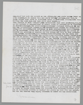 zoover het de aestheten betreft, niets bekend bleek bij nadere informatie aan ‘welingelichte’ adressen; en zelfs doen zij maar al te graag, ‘alsof’ het Allerwelingelichtste Adres hun had meegedeeld, dat ‘anders-zijn’ hetzelfde is als ‘hooger-zijn’! En daarom is ook het beeld van den ‘hoogen’ daktuin nog tè misleidend-aesthetisch....