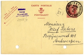 Ik ben overijld in de goede stad Br. teruggekomen, maar heb een boel in de familie te doen gehad en aan den anderen kant veel in Zwitserl. onafgedaan gelaten. Ik vertrek eerstdaags weer, naar Parijs en Lausanne, of liever: naar Lausanne over Parijs, en denk eerst tegen eind Sept. (26 of 27) definitief - en officieel! - te Br. teruggekeerd te zijn. De 200 fr. voor den clicheur worden je eerstdaags toegezonden; de rest doen we later samen af. Houd de drukproeven of zend ze hierheen: 3 rue de B.V.17 Au revoir!