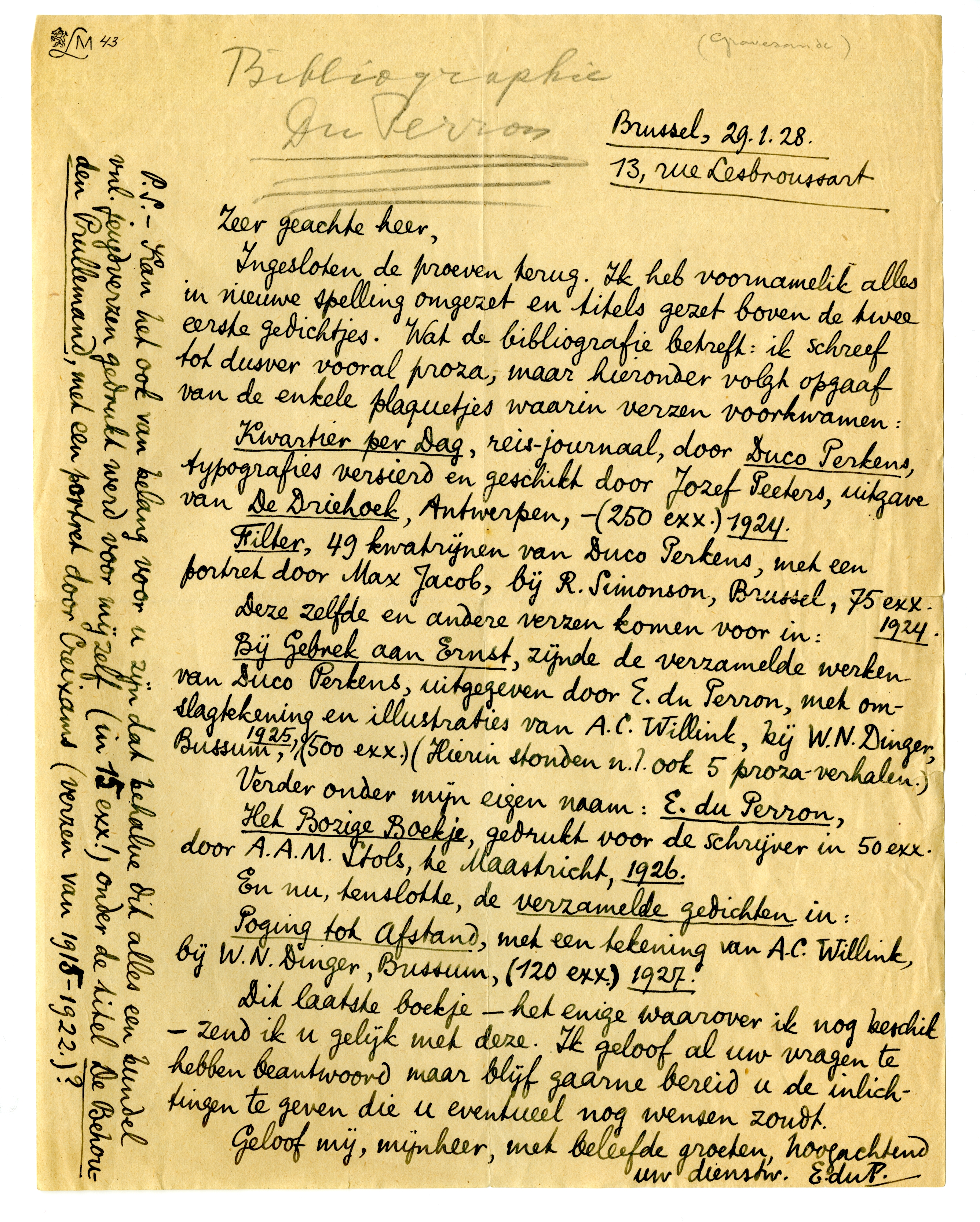 P.S. - Kan het ook van belang voor u zijn dat behalve dit alles een bundel vnl. jeugdverzen gedrukt werd voor mijzelf (in 15 exx!) onder de titel De Behouden Prullemand,287 met een portret door Creixams (verzen van 1915-1922.)?
