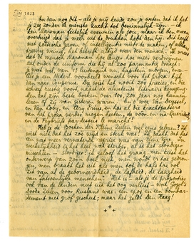 In cahier 5 staan eenige blzn. die je dit misschien duidelijker zullen maken (naar aanleiding van den Nederlandschen roman).593-Ik geef overigens voorloopig die cahiers-schrijverij op594; ik had 40 blzn. klaar voor cahier 6, waaronder een antwoord aan Herreman, ik heb die boel verscheurd. Ik heb voortdurend de behoefte n.l. mij over dergelijke dingen te uiten, maar ik verlies geen oogenblik het besef dat het allemaal erg relatief is, in de eerste plaats van belang-en dan nòg!-voor onszelven, dat wij er in laatste instantie niets van weten: maar dan Marsman (met zijn pharmacopae van de schoone letteren) precies even weinig als ik (met mijn ‘egotistische’ aanteekeningen). Het is ten slotte altijd weer als in dat versje: