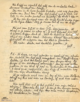 Het art. voor D.G.W. is door J. Gr. doorgezonden. Ik schreef er je naam en adres op; je zult ditmaal dus wèl de proeven krijgen, denk ik. Wat de betaling betreft, dat schijnt een andere zaak. Iedereen klaagt daarover, sedert Strengholt de uitgever van het blad is geworden.