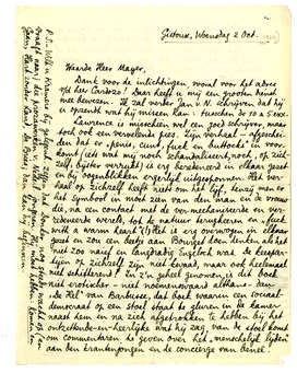Dank voor de inlichtingen, vooral voor het adres v/d heer Cardozo700! Daar heeft u mij een grooten dienst mee bewezen. Ik zal ver-der Jan v.N. schrijven dat hij u opzendt wat hij missen kan: tusschen de 10 & 5 exx.