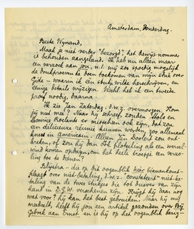 Kan ik hier den een of ander misschien vragen om copy voor je D.G.W.? Ik zie Kelk nog al dikwijls, maar hij schrijft spaarzaam. Hij drinkt daarentegen met ijver. Verder heb ik den heer Van Wessem ontmoet, die ongeveer schrijft zooals hij er uitziet: hij heeft een halve gezichtsverlamming. Ook een beste vent.