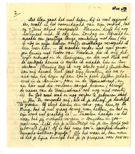 Intusschen gaat het met mijn moeder betrekkelijk goed, maar Simone is zeer nerveus en lag nu een weekje met ischias in bed. Ik schreef Van de Linde953 dat ik hem gaarne nog eens met S. opzoeken wou en denk dat ook zeker te doen vóór we van hier weer weg gaan. - Enfin, Jany, dat is een dubbel velletje misère en heusch, ik heb het nog kort gemaakt.
