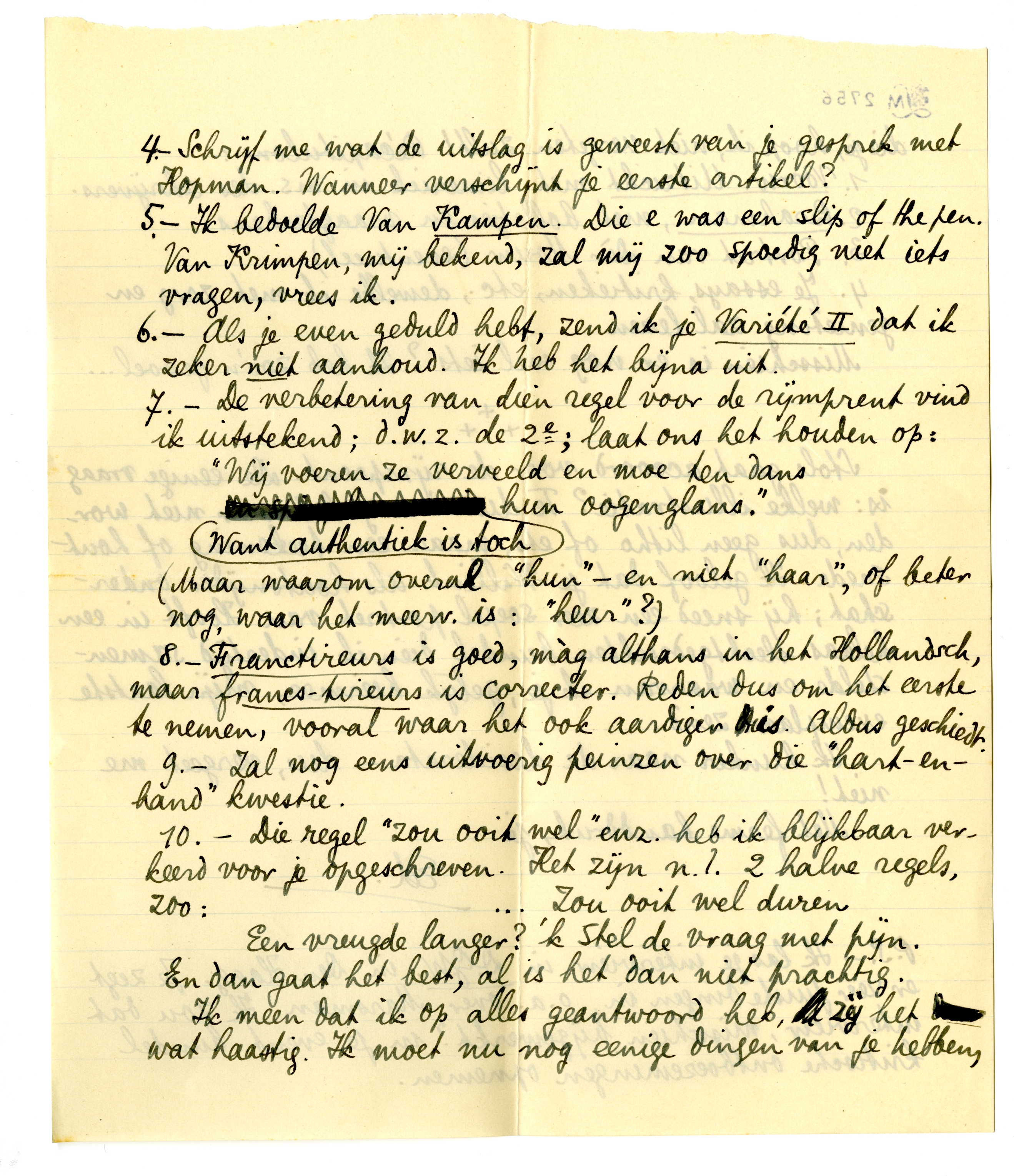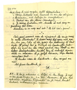 | 4. | - Schrijf me wat de uitslag is geweest van je gesprek met Hopman. Wanneer verschijntje eerste artikel? |