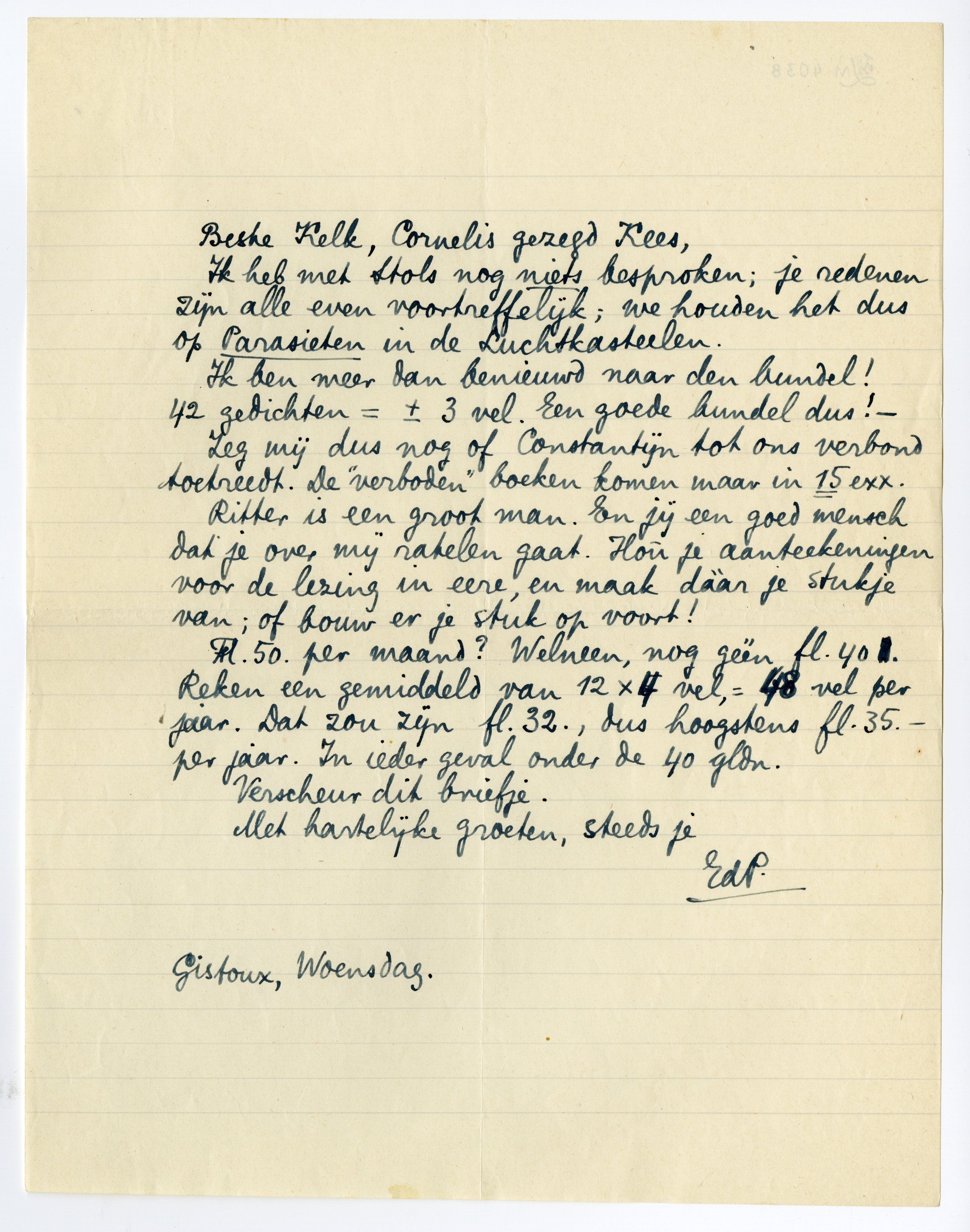 Ik heb met Stols nog niets besproken; je redenen zijn alle even voortreffelijk; we houden het dus op Parasieten in de Luchtkasteelen.