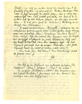 Vandaag ga ik naar Brussel om het appartement te zien en misschien al te beginnen het te meubelen. Over een paar dagen kom ik eens bij je aan om te zien of je er weer zit. Aty heeft beloofd dat ze ook met meubelen zou helpen. Ik heb een ongeveer volledige ‘slaapkamer’; de rest moet worden ingeslagen.