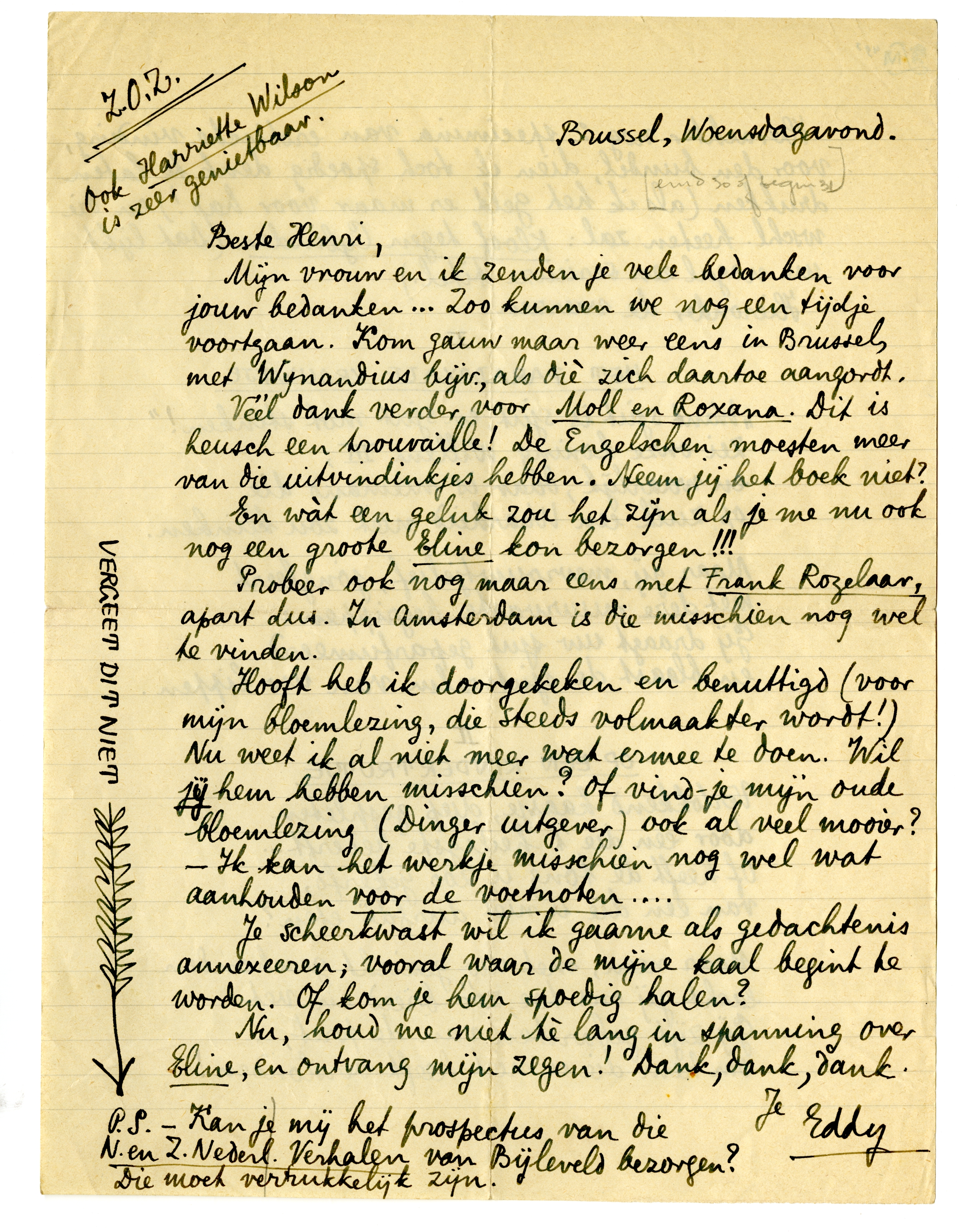 P.S. - Kan je mij het prospectus van die N. en Z. Nederl. Verhalen van Bijleveld bezorgen? Die moet verrukkelijk zijn.