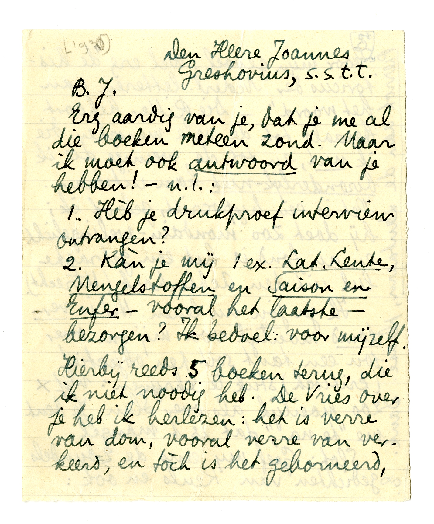 Erg aardig van je, dat je me al die boeken meteen zond. Maar ik moet ook antwoord van je hebben! - nl: