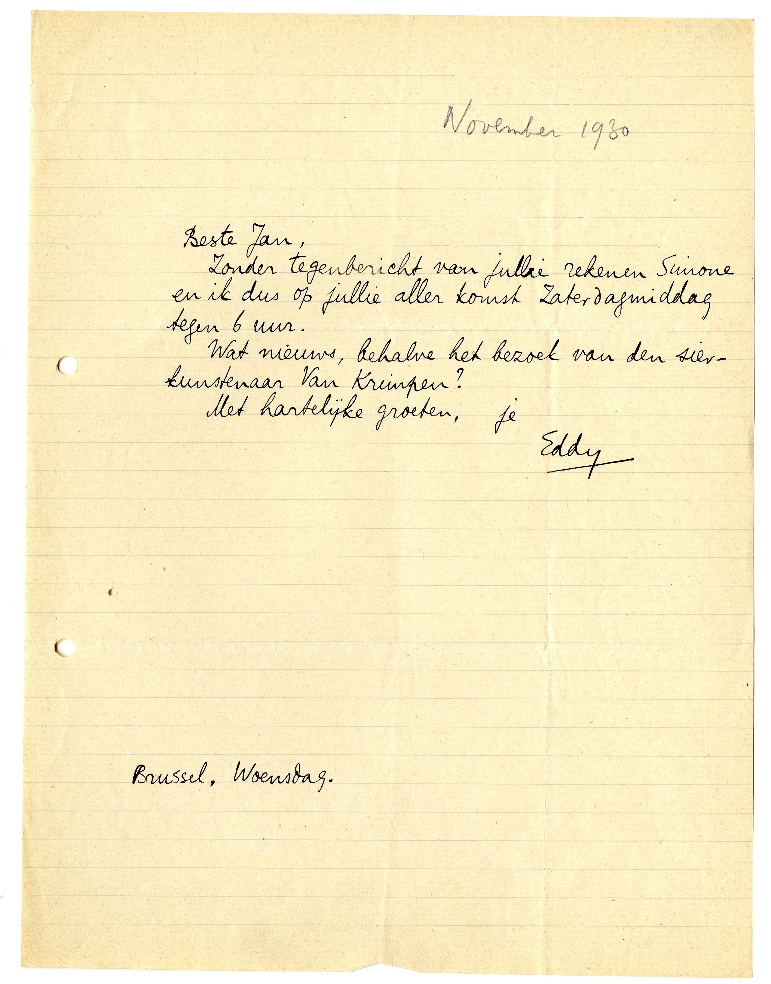 Wat nieuws, behalve het bezoek van den sierkunstenaar Van Krimpen?