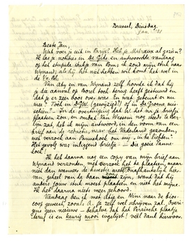 Hij komt Zaterdag a.s. hier. Bouws daarentegen heeft me net weer verlaten. Er schijnt voorloopig staking te zijn in de tijdschriftplannen; Bouws heeft ook een aanbieding gekregen om continentaalcorrespondent te worden van een Australisch blad (met zetel Parijs)1451 en denkt er hard over het aan te nemen. Salaris fl.800.-in de maand en nat. alle reizen vrij. Maar het genre van bestaan lokt hem eig. niet erg aan; hij is te veel ‘epicurist’ daarvoor. - Misschien gaat die tijdschrift-historie met de Hanen1452 tòch door...