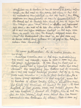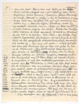 P.S. - In de Cahiers zet ik, als u het goedvindt, uw eersten brief en het fragment van den tweeden dat ik aanstreepte, gevolgd door het z.g. ‘naschrift’ en de middenmoot van dit schrijven.* Laat u eens hooren wat u nu meent dat wij voor publicatie elders kunnen doen. Ik heb Kramers een hint gegeven dat wij de heele nasleep misschien in het April-nr. van DGW. zouden kunnen zetten, maar ik vrees dat hij er niet op in zal gaan en ik stel mij liever niet aan een nieuwe weigering bloot. Hij heeft het voortdurend over ‘te lang’, over ‘verplichtingen tegenover den uitgever’ en over ‘de noodige variatie’ in zijn blad!