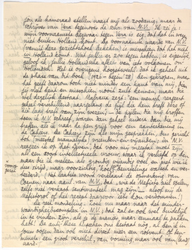 De rest mondeling. Zoek nu maar naar het minderwaardigheidscomplex in N.V.; dat zal er ook wel duidelijk in te vinden zijn, als je de manier maar eenmaal te pakken hebt! De anti-these tusschen ons bestaat nòg, al ben ik in jouw oogen dan ook niet direct meer een rotvent. Of tenminste: een groot verschil, van vorming, maar ook van (land)aard.