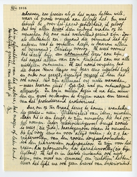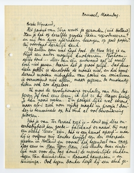 We zullen zien wat Last doet. De Nwe Weg is en blijft een ander mogelijk knokterrein. Ofschoon... après tout... Meer dan één antwoord zal ik wschl. toch niet geven; daarin heb je groot gelijk. Dat fanatieke geblèr is tenslotte de moeite niet, en het voortdurend moeten uitrafelen van poëzie en socialisme is vermoeiend niet alleen, maar gegeven de omstandigheden ook zoo hopeloos.