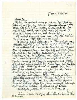 Nu Jan, laat hooren òf en wanneer je komt. Liefst deze Zaterdag bijv! Men zegt dat Jany tegen den 15en komt en dan ook hier zou willen logeeren. Maar ik had jou liefst zoo gauw mogelijk aan mijn zijde, in deze dreven. Ik verveel me al zoetjes.