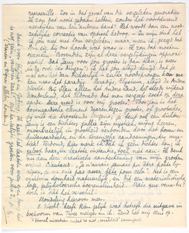 P.S. - Het zou onjuist zijn te zeggen dat er een ‘verkoeling’ is geweest, of is, tusschen Jany en mij. Er is een andere instelling van mij tot hem; meer weet ik er eig. niet van. Ik zal zien wat deze logeerpartij oplevert. Ik waardeer hem, als jij, buitengewoon, om wat jij ‘ruimte’ noemt (een zeer goed woord!)