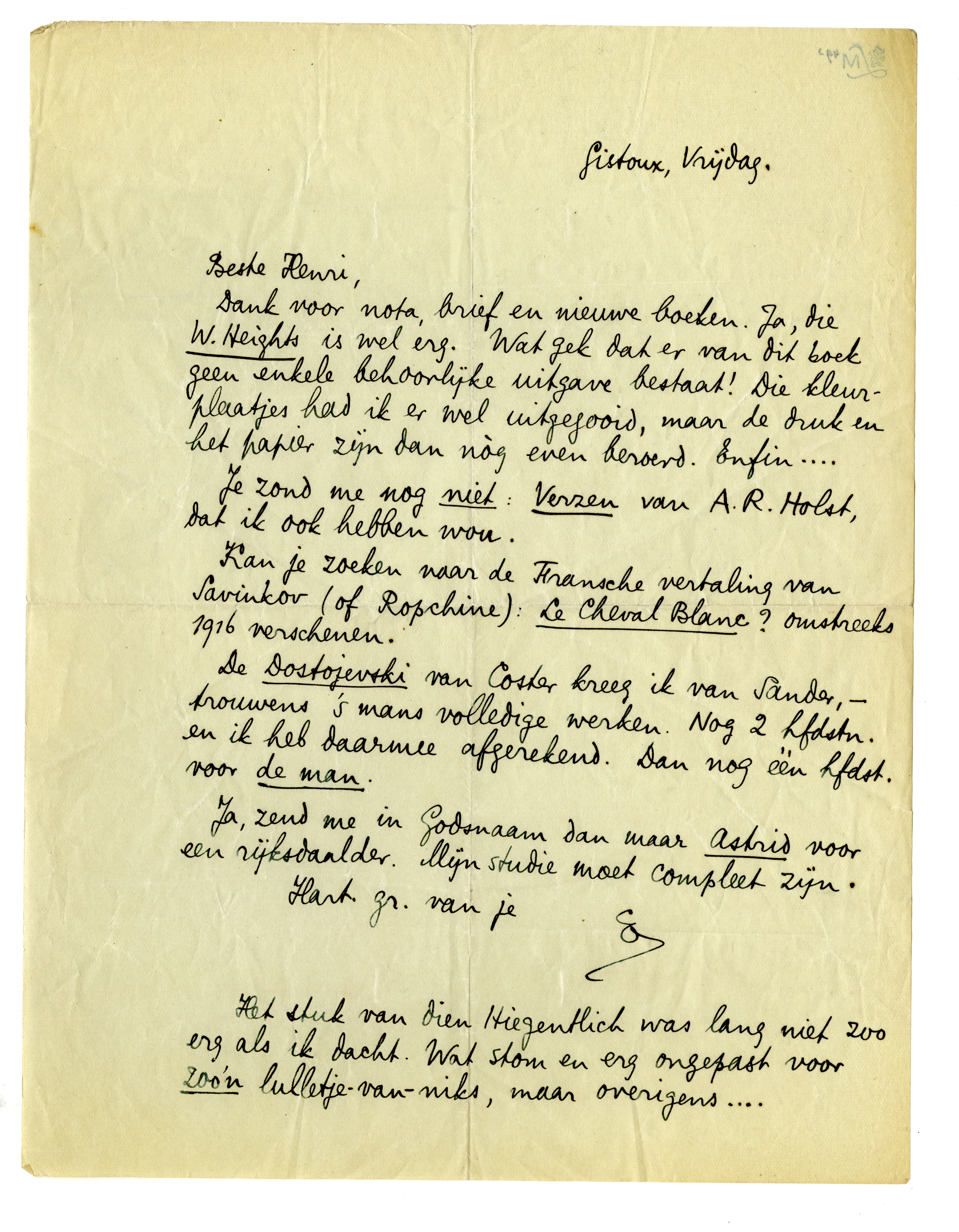 De Dostojevski van Coster kreeg ik van Sander, - trouwens 's mans volledige werken. Nog 2 hfdstn. en ik heb daarmee afgerekend. Dan nog één hfdst. voor de man.