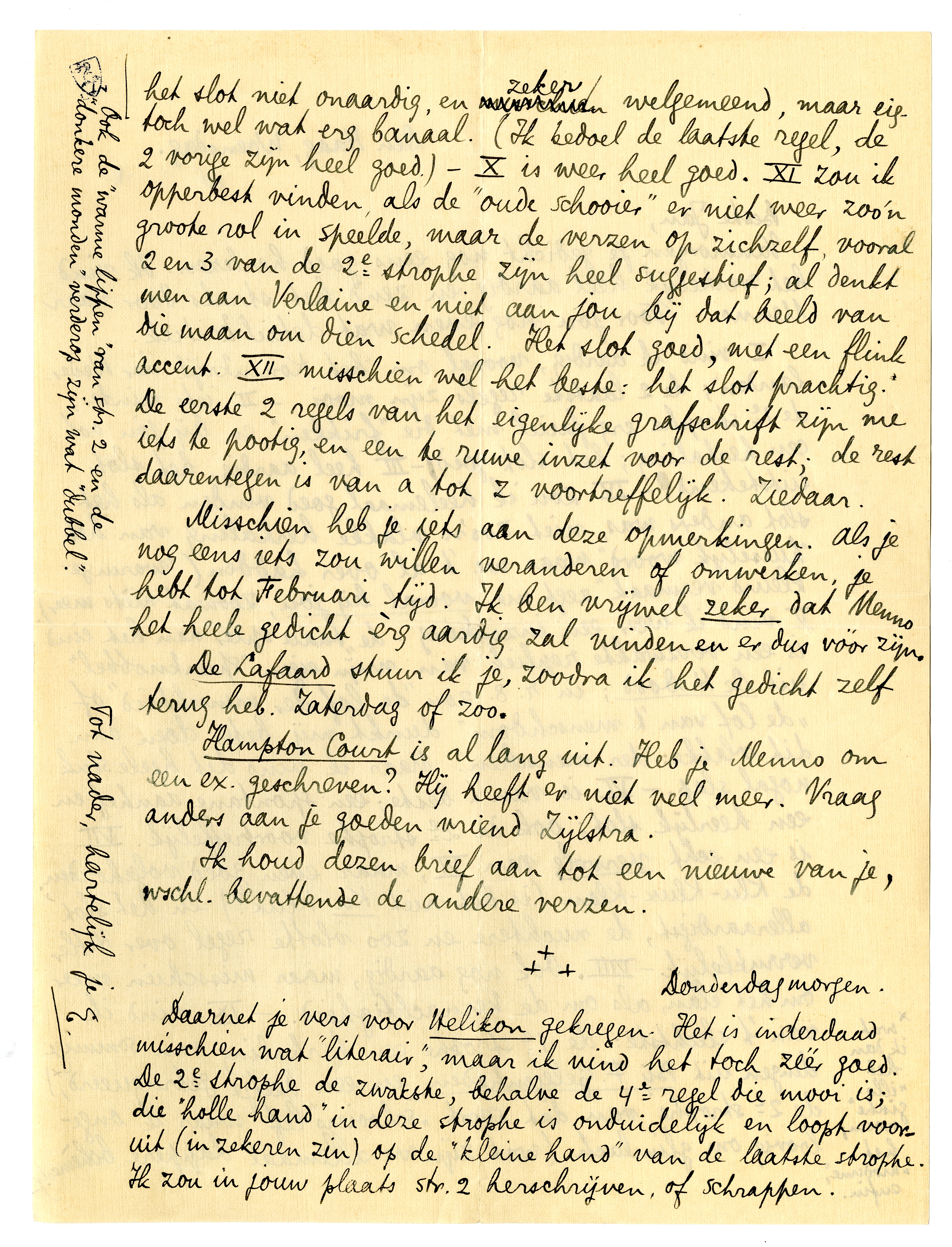 Ik houd dezen brief aan tot een nieuwe van je, wschl. bevattende de andere verzen.