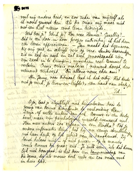Boeh!, wat een heel verhaal weer hierover. Wanneer zien we elkaar weer? In Amsterdam misschien? Ik vrees ook dat Bergen in den winter mij niet bepaald ‘inspireeren’ zal, vooral niet in mijn tegenwoordige eenzaamheid. Ik voel mij anders best, en zoo zeker van mijzelf als ik nooit geweest ben. Als die crisis mij maar niet met een heel nieuw soort leven bedreigde.