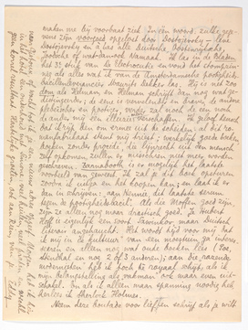 Neem deze boutade voor lief en schrijf als je wilt naar Gistoux, of wacht tot ik je een nieuw adres opgeef. Morgen heb ik hier in het hotel een onderhoud met Simone: veel huilen, veel praten en wschl. geen korrel resultaat. Hartelijke groeten, ook aan Rien, van je