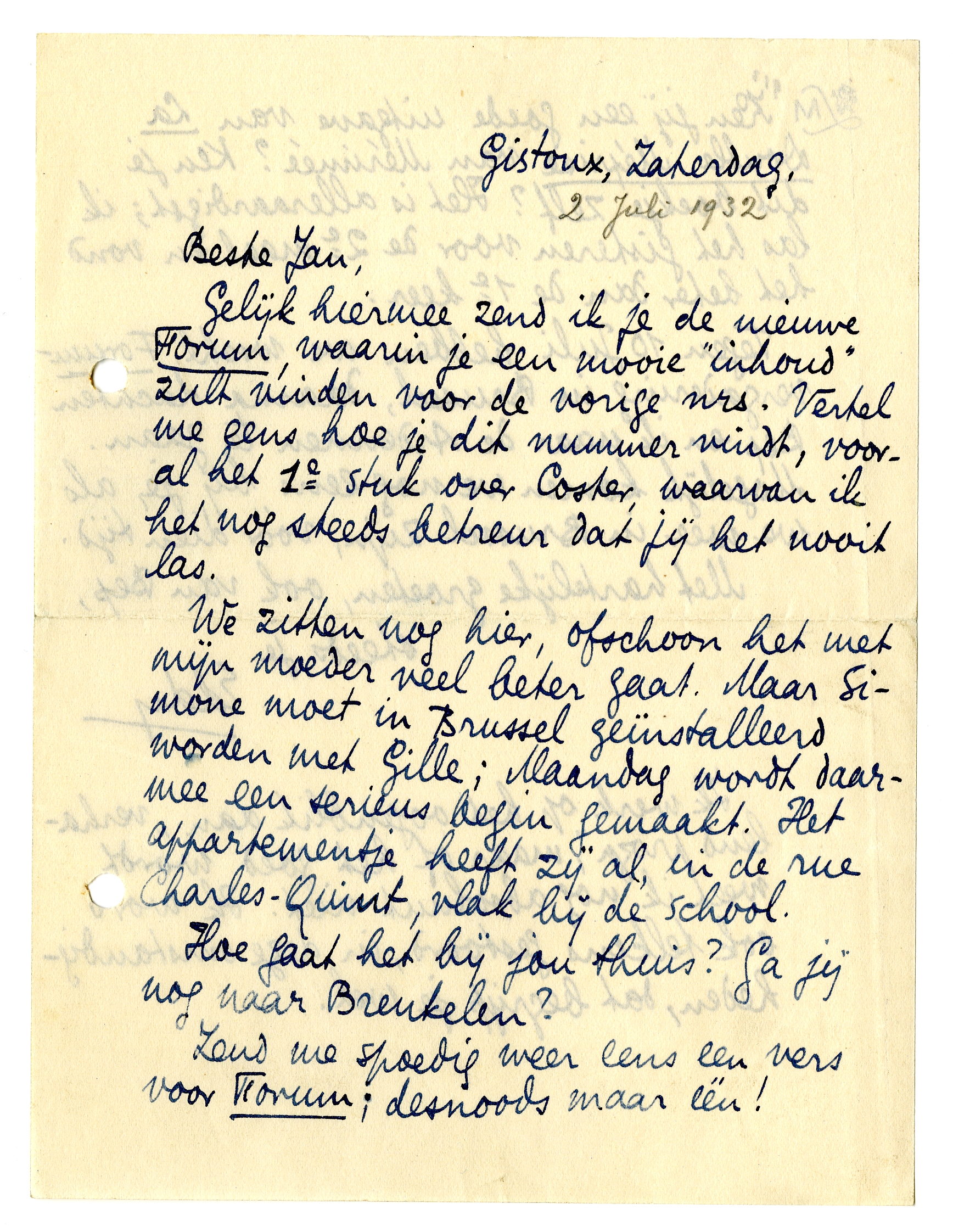 Hoe gaat het bij jou thuis? Ga jij nog naar Breukelen? Zend me spoedig weer eens een vers voor Forum; desnoods maar één!