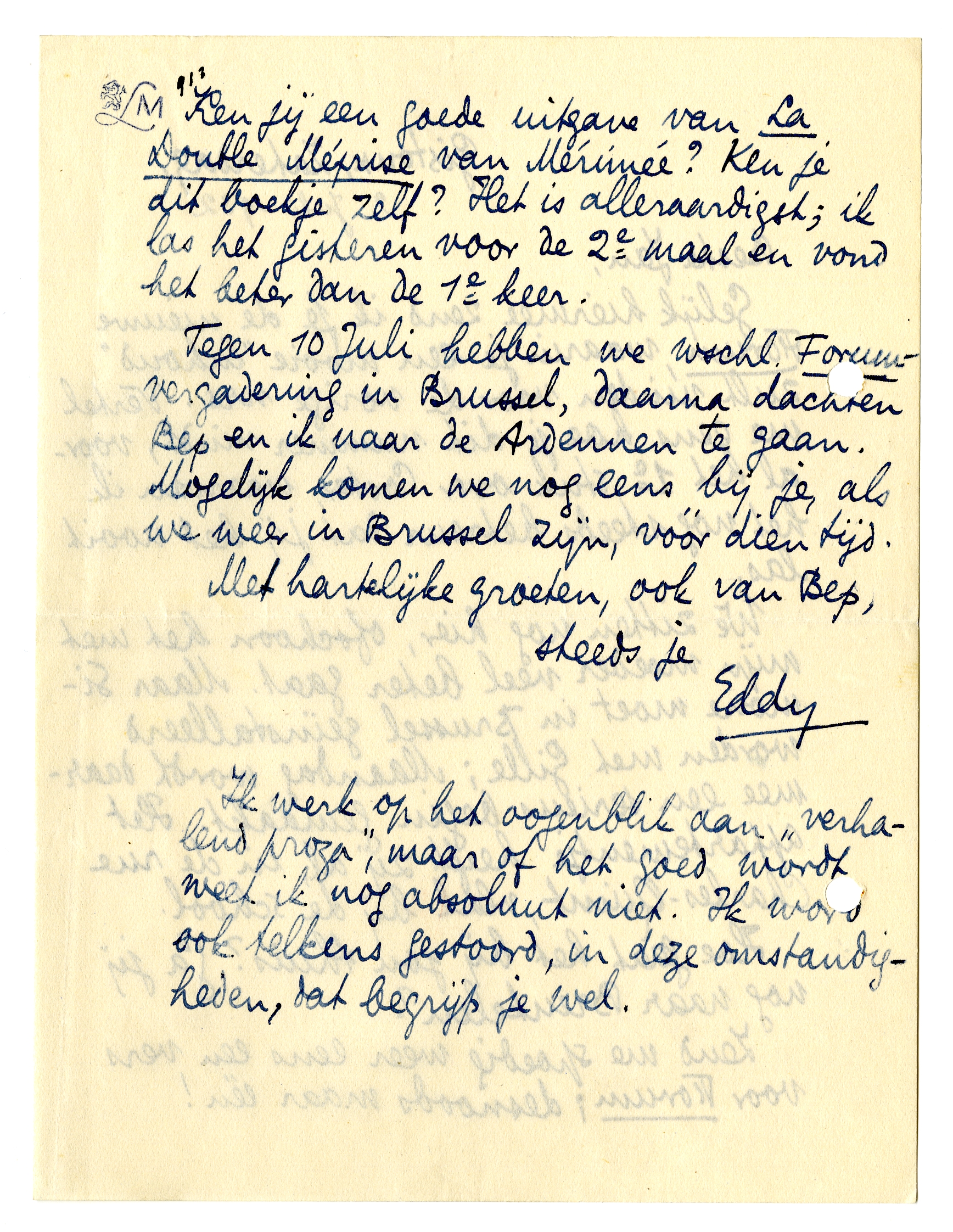 Tegen 10 Juli hebben we wschl. Forum-vergadering in Brussel, daarna dachten Bep en ik naar de Ardennen te gaan. Mogelijk komen we nog eens bij je, als we weer in Brussel zijn, vóór dien tijd.