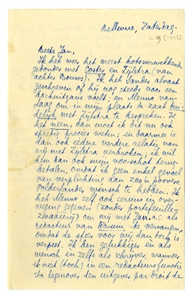 Wat Van Eckeren betreft: je maakt je illuzies. Maar ik ben zéér benieuwd naar zijn stuk, en op het oogenblik tot ‘slaags raken’ alweer méér dan bereid. Over verkeerd lezen valt n.l. te praten: de man kan het Costerlijk bargoensch uit verwantschap al beter verstaan dan ik; van het verkeerd citeeren zou ik graag een staaltje zien. Kan je hem niet vragen mij het stuk2338 te zenden? Plaats Kramers het wèl, dan wil ik ook mijn recht van antwoord. Want zelfs als Van E. gelijk heeft, dan nòg valt het accent ergens anders: op het feit van al dan niet Costeriaan te zijn; en wat een Costeriaan is hoop ik den braven Mauk dan uit te leggen in een taal die niets philosofisch heeft. (Misschien dat zelfs Zijlstra er dan nog zijn voordeel mee doet - al is er bourrique en bourrique.)
