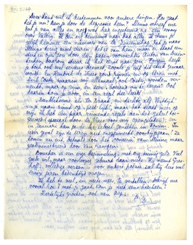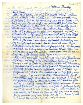 Hier is het, materieel gesproken, ook verre van rooskleurig. - Wij komen duidelijk te kort (om althans ‘behoorlijk’ rond te komen) en wat ik dacht met artikelen te kunnen bijverdienen is een beetje een illuzie. Ik had bijna het correspondentschap voor Parijs gekregen van Het Vaderland, maar het lukte me gewoonweg niet, ik kòn die leuterpraat niet op papier krijgen! Treurig, als je zoo'n ‘artistieke’ hindernis bij jezelf constateeren moet. Ik vertaal nu een verhaal, en kreeg ook een paar artikelen de deur uit, maar het kost me alles veel tijd en wat je ervoor ‘maakt’, blijft miniem. Ik weet werkelijk niet wat er gebeuren moet, als de geldnood ernstig wordt: De meubels van Gistoux zijn nu alle verkocht, en mijn moeder wil probeeren Gistoux zelf nog eens te verkoopen op publieke vendutie, maar ditmaal in Brussel (niet in Wavre.) Als het kan, nog vóór volgend jaar.