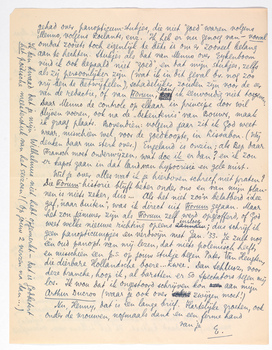 Dank voor je schrijven, dat mij weer eens veel goed gedaan heeft. We zullen zien wat er gebeurt. Iemand houdt zich nu in Brussel op althans eerlijke manier met het verkoopen van Gistoux bezig, zekere Timmers Verhoeven, directeur van de Levensverzekering Mij ‘Utrecht’, dus iemand met veel relaties. Wat mij alleen zoo pest, is het verrot-valsche optreden van dien notaris, die nu weer een Brusselsch passief van 60.000 frs. signaleert, wat mij hoogst onwaarschijnlijk voorkomt. Ik heb gespecifieerde opgaaf gevraagd, maar dan komt er geen antwoord. Enfin, dat gaat misschien zoo gauw niet. In ieder geval heb ik de overtuiging dat die ellendelingen niets doen om de boel te vergemakkelijken, alles om te compliceeren en zoo duur mogelijk te maken. Ik voel me echt ‘overgeleverd aan de Joden’.