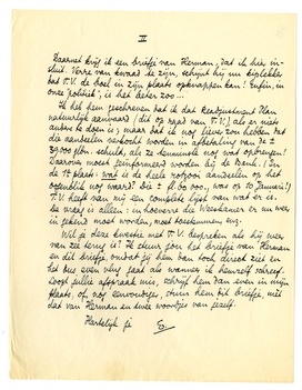 Ik heb hem geschreven dat ik dat Readjustment Plan natuurlijk aanvaard (dit op raad van T.V.), als er niets anders te doen is; maar dat ik nog liever zou hebben dat die aandeelen verkocht worden in afbetaling van de ± 39.000 gldn. schuld, als ze tenminste nog wat opbrengen! Daarover moest geïnformeerd worden bij de Bank. (In de 1e plaats: wat is de heele rotzooi aandeelen op het oogenblik nog waard? Die ± fl. 60.000., was op 10 Januari!) T.V. heeft van mij een complete lijst van wat er is. De vraag is alleen: in hoeverre die Weeskamer er nu weer in gekend moet worden, moet toestemmen, enz.