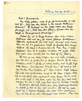 Nadat hij nl. 2 lange brieven aan mijn vrouw geschreven had vol van de meest gâteuse oudeheeren-elegantie, antwoordt hij niet meer, terwijl mijn vrouw hem nu al 3 × geschreven heeft, de laatste keer aangeteekend. Zij zond 3 brieven aan de Prov. Pers; 1 werd geplaatst, van de 2 andere merkten we niets. Alles ging naar dien meneer, die nu doet of hij dood is.