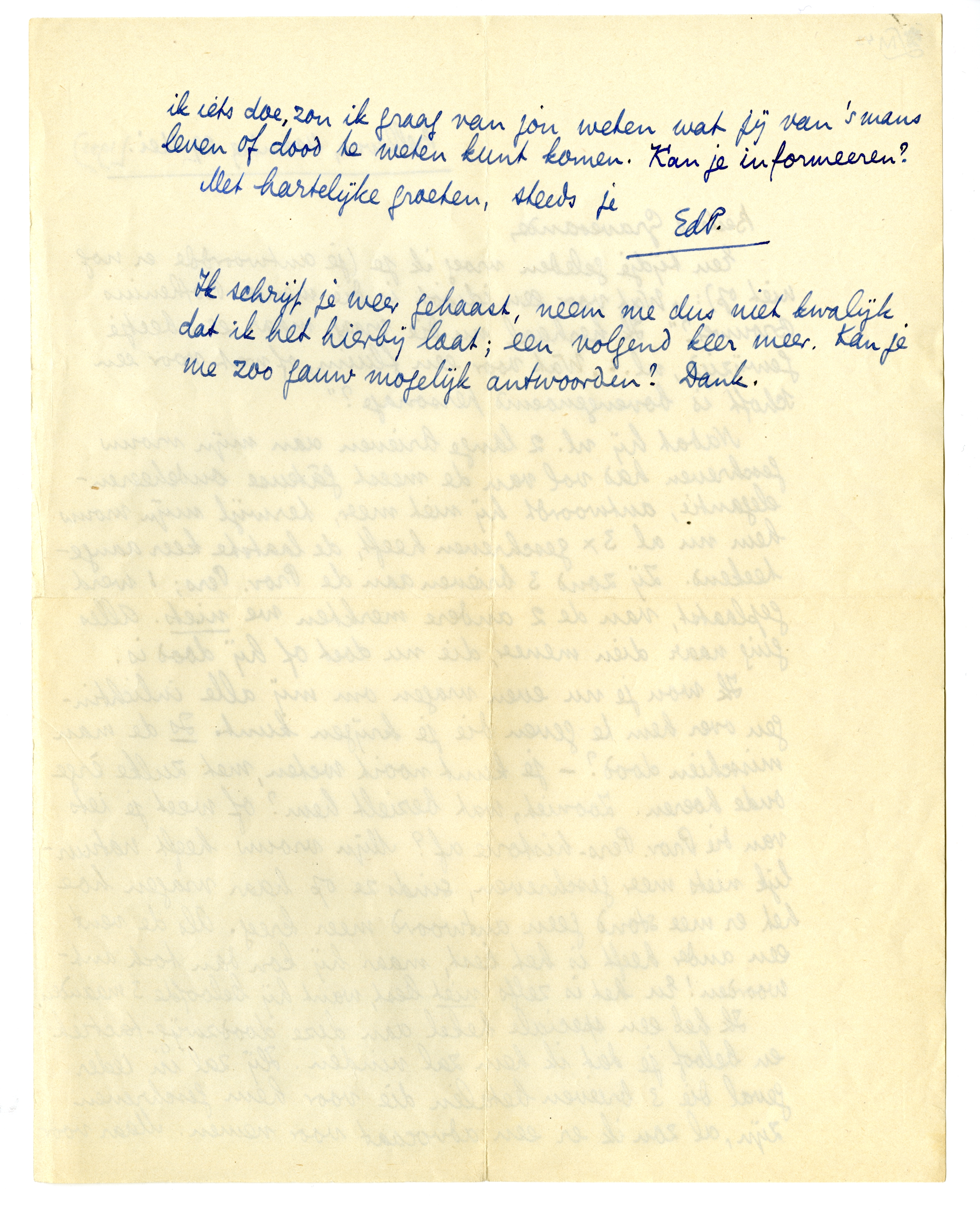 Ik schrijf je weer gehaast, neem me dus niet kwalijk dat ik het hierbij laat; een volgend keer meer. Kan je me zoo gauw mogelijk antwoorden? Dank.