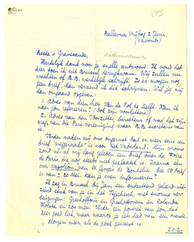 Hartelijk dank voor je snelle antwoord. Ik vond het hier toen ik uit Brussel terugkwam. Wij zullen nu wachten of B.B.2733 werkelijk schrijft. Is er morgen nog geen brief, dan verzend ik dit schrijven. Wil jij mij dan omgaand opgeven: