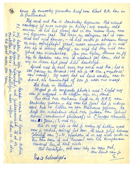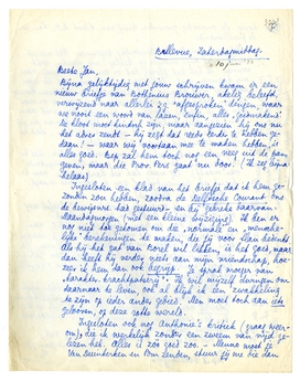 Bijna gelijktijdig met jouw schrijven kwam er een nieuw briefje van Bothenius Brouwer, akelig beleefd, verwijzend naar allerlei z.g. ‘afgesproken’ dingen, waar we nooit een woord van lazen, enfin, alles ‘goedmakend’. De kloot moet kindsch zijn, maar aangezien hij ons nu het adres zendt - hij zegt dat reeds eerder te hebben gedaan! - waar wij voortaan mee te maken hebben, is alles goed. Bep zal hem toch nog een veeg uit de pan geven, maar die Prov. Pers gaat nu door. (Ik zeg bijna: helaas.)