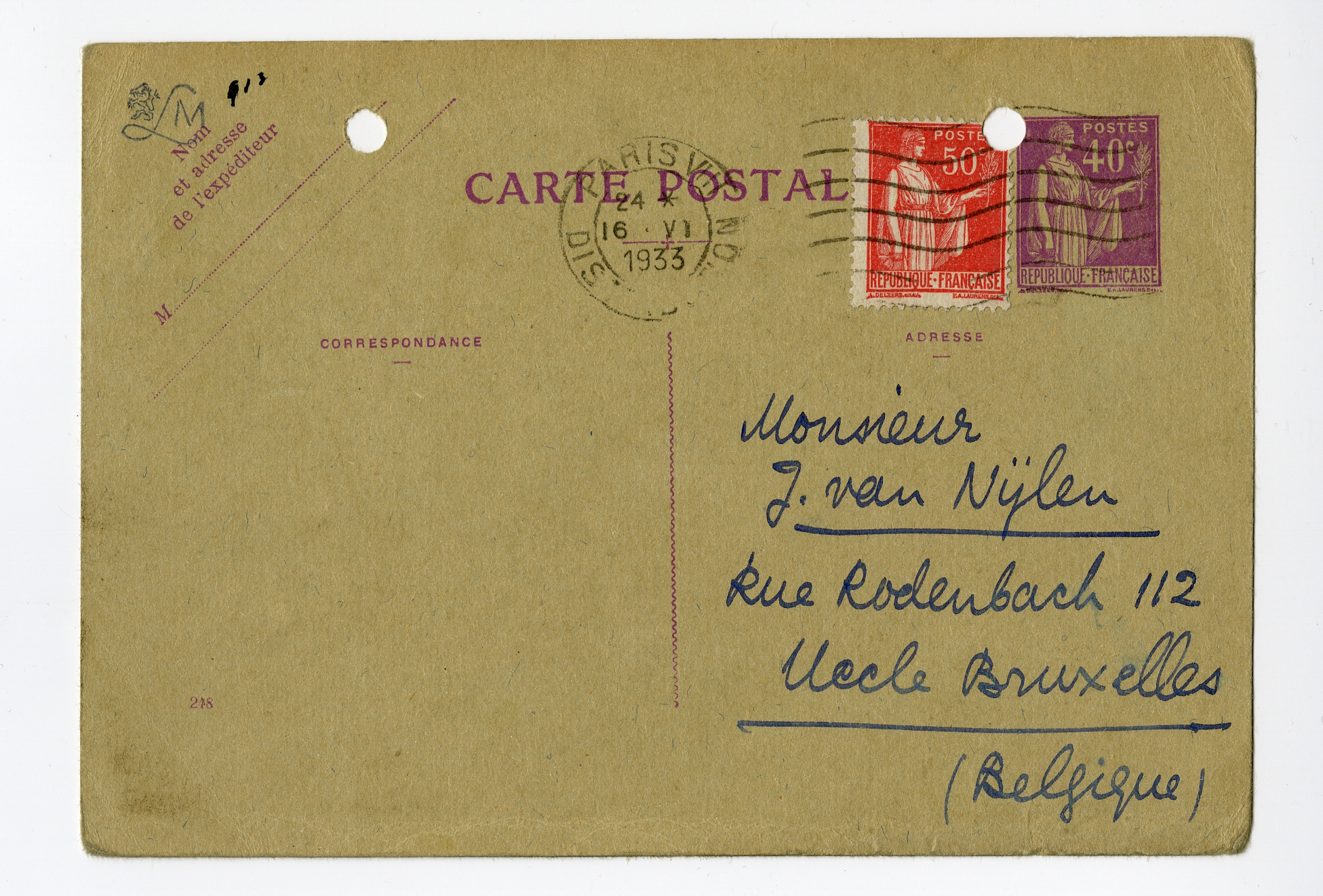 B.J. - Ik zit in zak en asch, omdat het boek van Pia allerberoerdst - of liever heelemaal niet - gaat. Dit in vertrouwen, de kans kan nog keeren. Misschien kom ik in verband daarmee eerstdaags in Brussel, als Bep en ik althans in het leege huis van Jan kun-nen. - Dank voor het stuk over Malraux, dat heel goed is; ik zond het hem direct door en zal het Dinsdag a.s. voor hem vertalen. Nu nog iets: kan je me omgaand even opgeven hoeveel blzn. Goena Goena dik is?