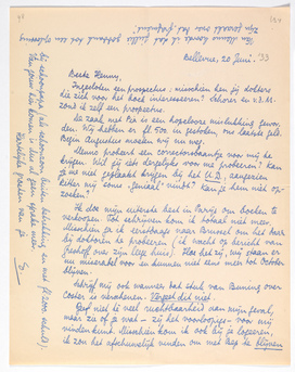 Geef niet tè veel ruchtbaarheid aan mijn geval, maar zie of je wat - zij het voorloopigs - voor mij vinden kunt. Misschien kom ik ook bij je logeeren, ik zou het afschuwelijk vinden om met Bep te blijven bij schoonpapa (als schoonzoon buiten betrekking en met fl. 2000. schuld). Van jouw hier komen is dus al geen sprake meer.