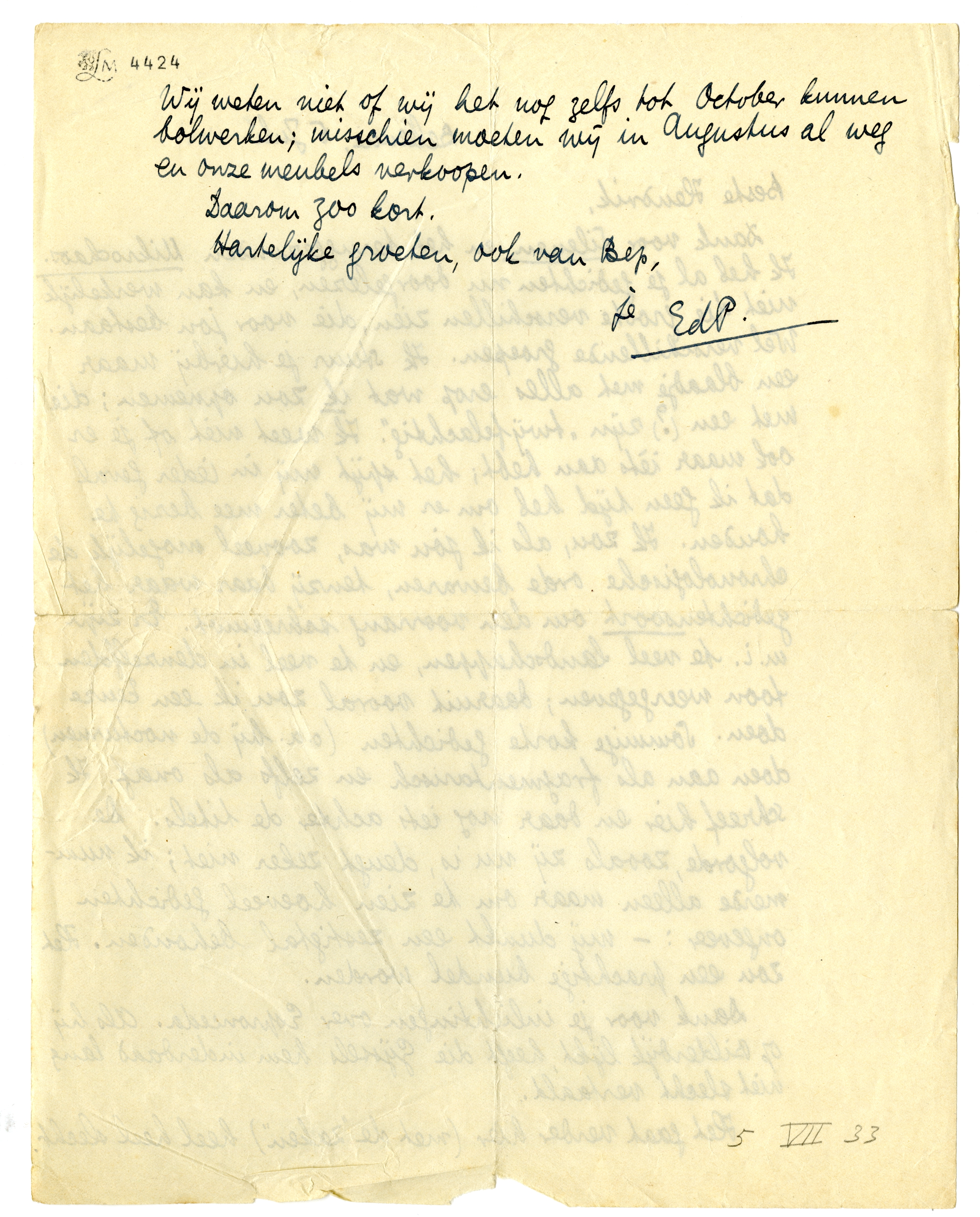 Het gaat verder hier (met de ‘zaken’) heel heel slecht. Wij weten niet of wij het nog zelfs tot October kunnen bolwerken; misschien moeten wij in Augustus al weg en onze meubels verkoopen.