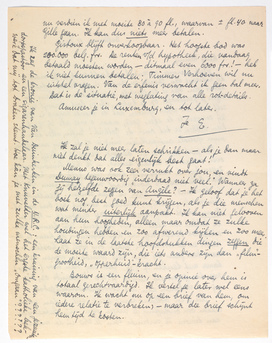 Het gaat met ons erg beroerd. Maar ik schrijf er niet over, omdat dat te lang duurt. - Ik heb Simone moeten zeggen dat ik vanaf Aug. haar geen geld meer kan zenden. Gille moet op kostschool voor maximum 500 frs. in de maand; meer kan ik niet zenden. Meulenhoff (die vertaling) zwijgt; misschien zwaait dat dus ook af. Forum wordt hoogstwschl. in 1934 opgedoekt. - Bep en ik hebben nu alles precies berekend. Wij kunnen misschien tot October nog wel hier blijven - de huur is betaald en de verhuizing jaagt ons toch op kosten - maar dan gaan wij heel heel armoeiig wonen op één kamer met keuken of zoo. Gaan wij van hier (Parijs) weg, dan geven wij alvast fl. 100 's maands op, die wij nu verdienen aan dat correspondenten-gedoe.