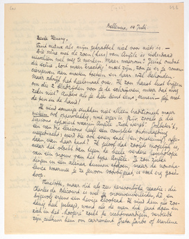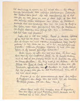Later nemen we alles dus nog eens door. Ik houd mijn hart vast bij het hoofdstuk Soirée, en die knecht, Antoine, vind ik ook al zoo griezelig zuiver in de traditie van film en roman-feuilleton. Eén ding moet je me beloven: dat het schema van Terzij de horde al origineeler is dan dit. Als romancier, afgescheiden van Ausdauer en verder ‘talent’, ligt het gevaar voor jou in het traditioneele zien, als ik mij niet sterk vergis.
