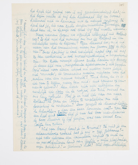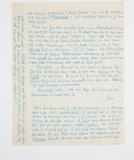 Deze kwestie is zóó boeiend - om onze ‘literaire werelden’, die weer dwars tegen elkaar ingaan (en als altijd: met meer begrip van mij voor jou dan van jou voor mij) - dat wij er een dag ingespannen over zouden kunnen praten. Die absolute overtuiging waarmee je mij bezweert deze hoofdstukken op te geven, vind ik zoo heerlijk, en bewijst hoe werkelijk en totaal mijn toon langs je heen gaat! Bravo; ik vind het zoo niet bepaald prettig natuurlijk, maar toch - in het absolute - uitstekend. Al zijn we de beste vrienden en vòl belangstelling voor elkaar - ééns komt er telkens weer een moment waarop wij van elkaar zeggen: ‘Nee! dat mot ik niet’ - jij bij mijn Indische jeugd, ik (ofschoon in veel geringer mate) bij je laatste ‘ik’-stuk in Forum2945.