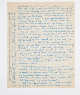 Dank voor je nieuwe brief. Ik hoop ook nog wel een stukje in Ducroo te schrijven dat je bevallen zal. Maar de boedelbeschrijving wordt als eenig-voor-mij-juiste-toon vooreerst voortgezet. Voor mijn ‘verhalen’ voel je ook niet. Je zult je dus met de ‘gesprekken’ moeten tevreden stellen, vrees ik. Enfin, we zien later wel.