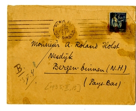 Ik heb weinig tijd en lust om te epistoleeren, vooral over dit soort aangelegenheden. Als je weer eens hier komt, moet je ons maar opzoeken, we bepraten die aangename details dan nog wel eens. Ik wou dat ik een vaste baan kon vinden die niet uit schrijfwerk bestond; niets lucratiefs, maar het noodige opleverend. Maar ook dat is tegenwoordig, zooals iedereen verzucht, veel te veel gevraagd, en wat er van ons worden moet, zal de toekomst wel leeren. Wij beramen van allerlei, maar zoolang we ± fl. 75. 's maands aan Het Vaderland kunnen verdienen met dat Parijsche correspondentschap, is het nog het beste hier te blijven. Een paar fragmenten van Ducroo komen in Gr. Ned. en Forum; verder heeft Querido me een aanlokkelijk bod gedaan, maar daarvoor moet het boek natuurlijk af zijn en ik kan niets eraan doen zoolang die vertaling me bezighoudt. (In principe moet die in April klaar zijn.) - Misschien krijg ik over een tijdje weer een andere vertaling! - als Jahwe me niet verlaat.