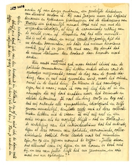Ik heb je niet meer geschreven omdat ik het erg druk heb. De vertaling van La Cond. Humaine die me een kleine fl. 400. opbrengt, geeft mede handen vol; het is verre van gemakkelijk en de omstandigheden hier werken niet mee. In de eerste plaats deze ruimte, die weinig stimuleerend is, dan de halve opstand die we nu achter ons hebben, als er tenminste niet spoedig iets volgt.