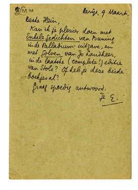 Kan ik je plezier doen met Enkele gedichten van Buning in de Pal-ladiumuitgave, en met Golven van Jo Landheer, in de laatste (complete!) editie van Stols? Of heb je deze beide boekjes al?