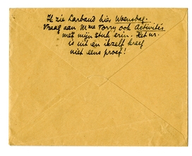 Geheimschrift van J.v.N. ontvangen en met verrukking gelezen. Ik schrijf hem er nog over, of spreek erover als ik in Brussel kom. - Ik kan hoogstwschl. niet vóór den 6en. Schrijf Timmers dat dus. Het idee van die klok lijkt me subliem, zoowel uit een practisch als een moreel oogpunt.
