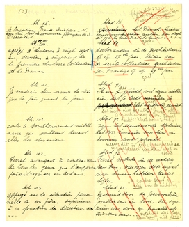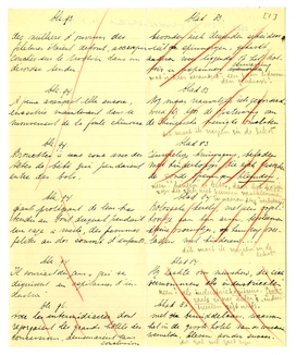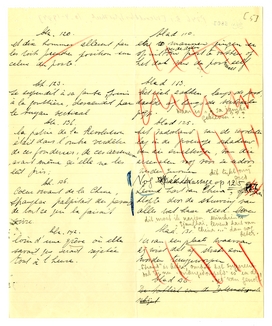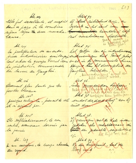 ‘Capitaines d'industrie’ is bepaald iets van Ferral: een ironische aardigheid. ‘Industriegeneraals’ of zoo. En dat ‘jouir’ is heel vervelend; ons Hollandsch is wel plat, en vooral gehaast-zakelijk daarbij! een Franschman ‘geniet’, een Hollander ‘komt klaar’. Maar de grofheid van formuleeren - of de onopgesmuktheid - is in het Fransch duidelijk bedoeld. Dus niet: ‘het aardsche genieten’. En wat zetten we bij de ruwheid van Tsjen? Het is duidelijk dat hij het in het Holl. precies zóó gezegd zou hebben - (en zooals ik het vertaalde). Zullen we er een noot bij zetten dat... gegeven het Hollandsche fatsoen......? ‘Genomen’ inpl. van ‘genaaid’ lijkt me erg kinderachtig, u niet?