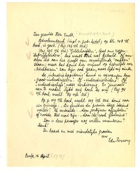 Op p. 119 v/h boek, wschl. 109 v/h MS. komt voor een zinnetje: ‘Les fenêtres du premier étage étaient voilées’. Ik vertaalde: ‘door gordijnen afgesloten’ of zooiets. Het moet zijn: ‘door (de) rook gesluierd’.