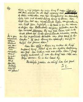 Maar dan echt - stuur me anders de brief omgaand terug, opdat ik er een andere bestemming aan geef. Zou Arthur niet mee willen doen? Graag spoedig antwoord: L. wou den brief vóór 1 Mei aan Colijn sturen. Er is dus haast bij.