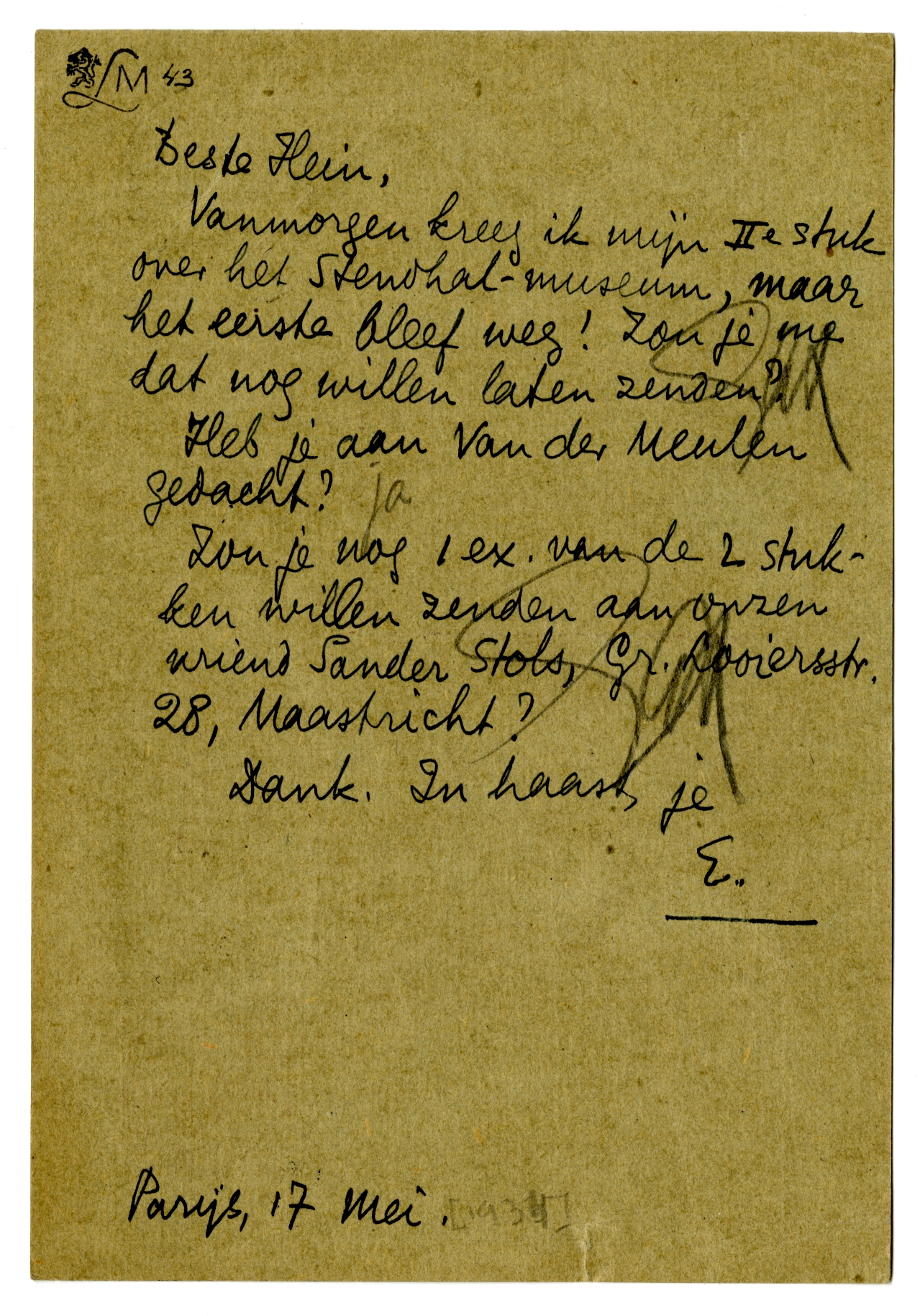 Vanmorgen kreeg ik mijn IIe stuk over het Stendhal-museum, maar het eerste bleef weg! Zou je me dat nog willen laten zenden?